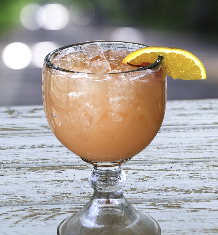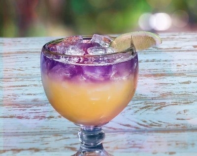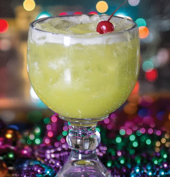A boozy blend of classic frozen margarita and Pat O’Brien’s Hurricane floated with melon liqueur.